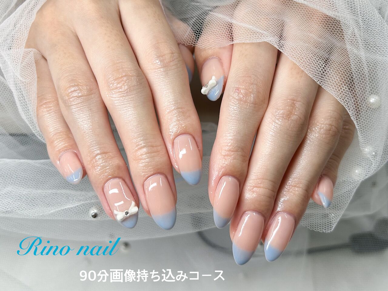 馴染みの良いベージュをベースカラーにして淡いブルーでフレンチを描いてます!